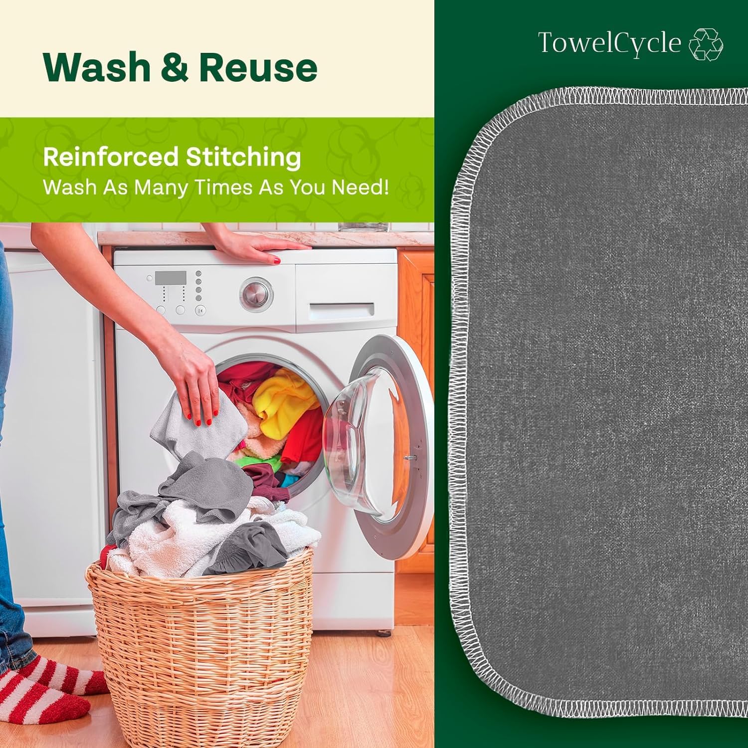 RE-ROLLABLE & DURABLE DESIGN: Re-roll these with ease. Also notice the great stitching to give you peace of mind when you machine wash. Better than bulk paper towels - reuse these like a breeze.
